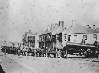 | Keywords: archives state records nsw staterecordsnsw newsouthwales blackandwhite pyrmont sydney train locomotive people workers horse and cart horseandcart monochrome outdoor building architecture snow black and white Class Z19 (A93) locomotive being delivered at Pyrmont Dated: January 1880 Digital ID: 17420-a014-a014000507 Rights: www.records.nsw.gov.au/about-us/rights-and-permissions We'd love to hear from you if you use our photos. Many other photos in our collection are available to view and browse on our website using Photo Investigator. Class Z19 (A93) locomotive being delivered at Pyrmont Dated: January 1880 Digital ID: 17420-a014-a014000507 Rights: www.records.nsw.gov.au/about-us/rights-and-permissions We'd love to hear from you if you use our photos. Many other photos in our collection are available to view and browse on our website using Photo Investigator. |