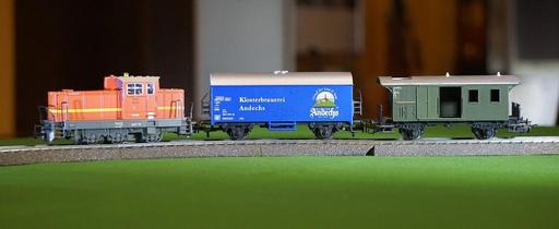Keywords: locomotive diesel marklin orange color transport railway wagon train blue wagon green wagon
