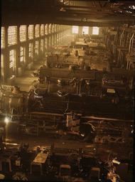 Keywords: locomotive shop railroad engines black and white retro steam building labor industrial workers train railway repair maintenance transportation