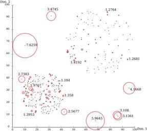 | Keywords: LOF.svg LOF outlier scores using ELKI The dataset is artificially generated to highlight LOF strengths Some interesting LOF scores are printed for k 5 LOF Outlier scores mittels ELKI Der Datensatz wurde künstlich erstellt um die Stärken von LOF zu zeigen Ein paar interessante LOF-Werte sind angegeben für k 5 own Chire 2010-05-14 Other fields ELKI + Algorithms Data mining Visualization |