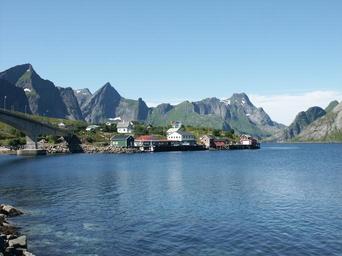 Keywords: lofoten arctic norway village fjord summer water mountain coast rorbu rorbuer