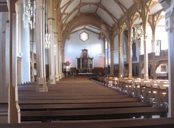 Keywords: Lofoten Cathedral 02.jpg en Vågan Church Lofoten Cathedral in Kabelvåg Norway Interior of the church seen against the choir with the altarpiece in the background In the foreground benches and far left the pulpit Chandeliers hanging from the ceiling no Vågan kirke Lofotkatedralen i Kabelvåg Interiørbilde sett mot koret med altertavlen helt i bakgrunnen Kirkebenker i forgrunnen Innerst til venstre sees prekestolen Lysekroner henger ned fra taket own 2011-06-14 Rünno Interior of Vågan kirke Reredos in Norway Church benches in Norway Gothic revival church interiors Church chandeliers in Norway June 2011 in Norway