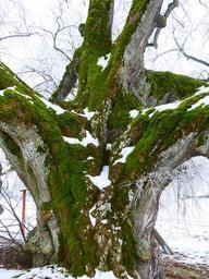 Keywords: log natural monument thicker stem powerful large tree bark winter snow landscape wood tree