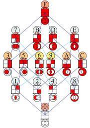 Keywords: Logic-hexadecimal.jpg LargeImage The sixteen nibbles corresponding hexadecimal numbers and 2-circle Venn diagrams ordered in a Hasse diagram Own 2008-03-21 me public domain File Logical connectives Hasse diagram svg Hexadecimal