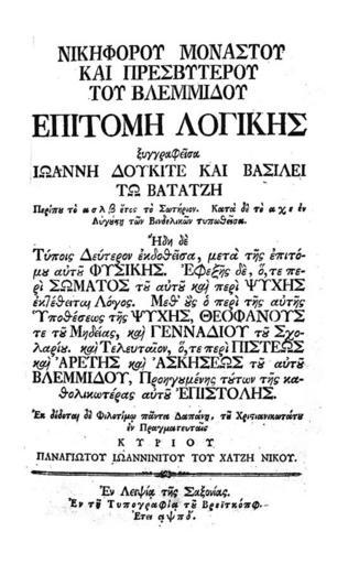 | Keywords: Logiki.jpg en Cover of 1784 greek book Logiki published in Leipzig Εξώφυλλο του βιβλίου ÎµÏ Î¹Ï„Î¿Î¼Î® λογικής Transferred from http //el wikipedia org el wikipedia; transferred to Commons by User MARKELLOS using http //tools wikimedia de/~magnus/commonshelper php CommonsHelper 1784 author This image is in the public domain PD-old-100 Original upload log page el wikipedia Logiki jpg 2006-06-25 17 16 Christos Vittoratos 567×891× 106425 bytes <nowiki></nowiki> Title pages in Greek Title pages from Germany History of logic 1784 books 1784 in science |