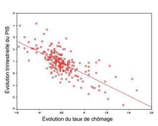| Keywords: Loi d'Okun.png Illustration de la loi d'Okun avec légende en français Adaptation de Image Okuns_law_charter_quarter JPG Okun's law Quarterly GNP growth NOT ANNUALIZED and change in the unemployment rate US data from US agencies from a file located here Data from 2nd quarter 1947 through 4th quarter 2002 Made using SPSS Regression results -1 827 Beta on unemployment change Std error 123 856 constant 049 adj R2 at 504 All vars and f-test 000 signifance Change GNP 856 - 1 827 Change Unemployment Rate 2006-04-04 own assumed Gribeco derivative works Linear regression scatterplot with generic formula png linear regression Scatterplots Okun's law charts Created with SPSS |