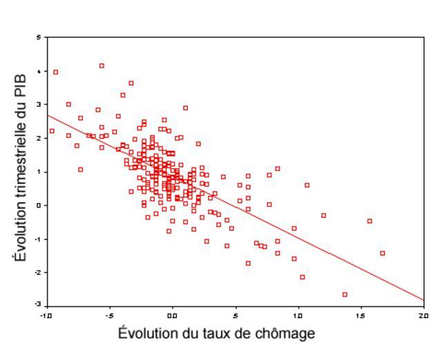 Keywords: Loi d'Okun.png Illustration de la loi d'Okun avec légende en français Adaptation de Image Okuns_law_charter_quarter JPG Okun's law Quarterly GNP growth NOT ANNUALIZED and change in the unemployment rate US data from US agencies from a file located here Data from 2nd quarter 1947 through 4th quarter 2002 Made using SPSS Regression results -1 827 Beta on unemployment change Std error 123 856 constant 049 adj R2 at 504 All vars and f-test 000 signifance Change GNP 856 - 1 827 Change Unemployment Rate 2006-04-04 own assumed Gribeco derivative works Linear regression scatterplot with generic formula png linear regression Scatterplots Okun's law charts Created with SPSS |
