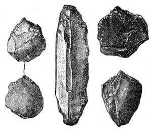 Keywords: Loir et Cher stone tools.jpg Сл 13 К емени комади из те ција них слојева код Тенеја на којима се види да су наме но к есани и доте ивани да би се на њима ство иле сечивице и ов шци са којима се може сећи и бости Како се на овим п име цима познаје да је камен у ват и жежен то је ве оватно да од ипе нису ок есине уда ом одбијане већ су жежењем ове у ват и комадане Project Rastko Kameno doba |
