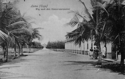 | Keywords: Lomé Togo Weg nach dem Gouverneurspalast 1904.png Lomé weg nach dem Gouverneurspalast � L�allée menant au Palais du gouverneur Le gouverneur August Kohler 1858 � 1902 qui était arrivé au Togo en 1895 décide de construire le Palais et en choisit l�emplacement à 250 mètres de la plage La ville de Lomé compte alors 2084 habitants dont 31 Européens La construction entreprise sans plan ni financement dès 1897 s�interrompt et reprend plusieurs fois pour s�achever entre1905 et 1906 sous la direction de E Schmidt le premier architecte employé par l�administration coloniale allemande Pour que l�ensemble de l�édifice puisse être vu depuis les navires en mer et ce malgré un talus qui bordait le rivage le bâtiment reçu un soubassement de 3 50 m Sur la façade est débouche deux avenues Franz-Fredrichstrasse et Wilelmstrasse l�actuelle avenue A Sarraut qui va parallèle à la plage La façade sud est tournée vers la mer A la même époque quelques maisons d�habitation destinées aux fonctionnaires sont construites aux abords immédiats du Palais � Cette carte postale dont le verso n�est pas divisé pour séparer l�adresse de la correspondance comme cela fut recommandé par l�Union postale à partir de 1904 doit dater de cette année soit avant l�achèvement du Palais http //idpao com/index php option com_content task view id 18 Itemid 36 1904 Postkarte PD-old-100 Buildings in Togo German Togo |