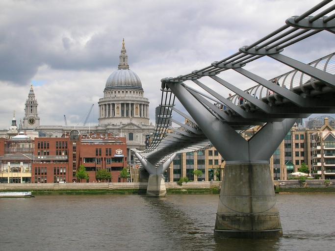 Keywords: london england great britain city urban cities buildings architecture millennium bridge landmark river water reflections shoreline nature outside