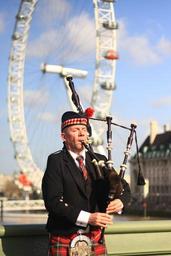 Keywords: london eye london city england urban british bagpipes scottish man person