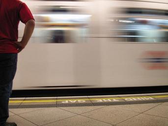Keywords: London Train Arriving.JPG Uploaded on the english wikipedia by en User Juanscott Mind the gap at London Underground London Underground D78 Stock