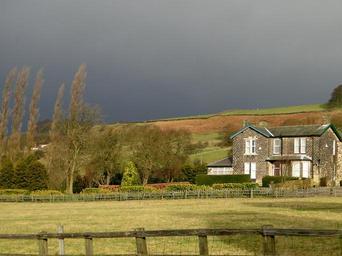 Keywords: lonely house landscape england yorkshire united kingdom nature moor meadow panorama english green tourism still weather changes storm thunderstorm dark clouds sun clouds sky rain weather threatening gloomy dark mood