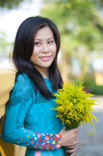 Keywords: long coat green girl young fresh vietnam shirt asia portrait blues fun woman flower sunny friends