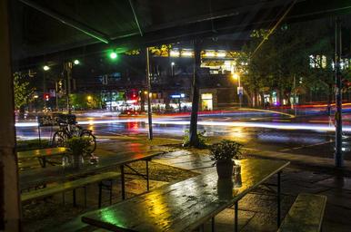 Keywords: long exposure nighttime night city germany deutschland kreuzberg wet rain rainy traffic outside cafe bar pub urban road