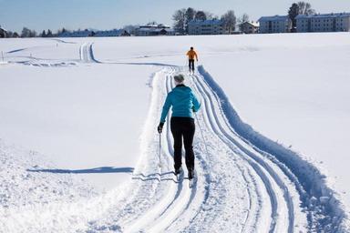 Keywords: long läuferin trail trace binding langlaufschuh cross-country ski sticks equipment dynamic snow lane winter landscape white hilly leisure recovery sport sunny cross-country skiing settlement homes