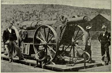 Keywords: Long Tom en route to Kimberley.jpg Siege of Kimberley http //www archive org/details/diamondminesofso00willrich The diamond mines of South Africa author 1900-01 PD-Old PD-1996 155 mm Creusot Long Tom Siege of Kimberley