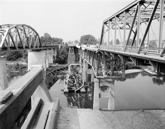 | Keywords: richmond va usa hurricane agnes hurricaneagnes virginia flood flooding natural disaster richmond va usa naturaldisasterrichmondvausa blackandwhite monochrome outdoor black and white View from the Rt. 1 Occoquan Creek Bridge, showing where the damaged section fell away. Intact piers can be seen on the far side of the river. Located on the outskirts of Woodbridge on the border of Prince William and Fairfax Counties. No. 72-1488, Virginia Governor's Negative Collection, Library of Virginia. View from the Rt. 1 Occoquan Creek Bridge, showing where the damaged section fell away. Intact piers can be seen on the far side of the river. Located on the outskirts of Woodbridge on the border of Prince William and Fairfax Counties. No. 72-1488, Virginia Governor's Negative Collection, Library of Virginia. |