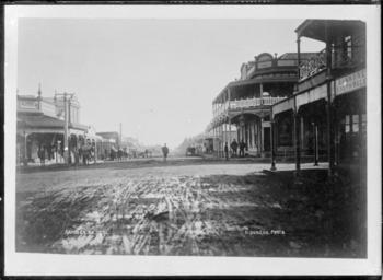 | Keywords: blackandwhite monochrome photo border outdoor skyline black and white Looking down a main street in Kaponga, South Taranaki. In the foreground, on the right is the Bank of New South Wales. Taken by D Duncan circa 1910. Inscriptions: Inscribed - Photographer's title on negative -bottom left: KAPONGA. NO.1971bottom right: D.DUNCAN. PHOTO. Quantity: 1 b&w original negative(s). Physical Description: Glass copy negative Duncan, David, fl 1910s. Looking down a main street in Kaponga, South Taranaki - Photograph taken by David Duncan. Price, William Archer, 1866-1948 :Collection of post card negatives. Ref: 1/2-000744-G. Alexander Turnbull Library, Wellington, New Zealand. natlib.govt.nz/records/22690942 Looking down a main street in Kaponga, South Taranaki. In the foreground, on the right is the Bank of New South Wales. Taken by D Duncan circa 1910. Inscriptions: Inscribed - Photographer's title on negative -bottom left: KAPONGA. NO.1971bottom right: D.DUNCAN. PHOTO. Quantity: 1 b&w original negative(s). Physical Description: Glass copy negative Duncan, David, fl 1910s. Looking down a main street in Kaponga, South Taranaki - Photograph taken by David Duncan. Price, William Archer, 1866-1948 :Collection of post card negatives. Ref: 1/2-000744-G. Alexander Turnbull Library, Wellington, New Zealand. natlib.govt.nz/records/22690942 |