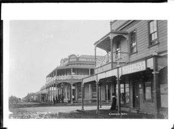 | Keywords: blackandwhite monochrome photo border outdoor building architecture black and white Looking down a main street in Kaponga, South Taranaki. In the foreground, on the right is the Bank of New South Wales, with the Dominion Hotel beyond. Photograph taken by D Duncan circa 1910. Inscriptions: Inscribed - Photographer's title on negative -bottom left: KAPONGA. NO.1969bottom right: D.DUNCAN. PHOTO. Quantity: 1 b&w original negative(s). Physical Description: Glass copy negative Duncan, David, fl 1910s. Looking down a main street in Kaponga, South Taranaki - Photograph taken by David Duncan. Price, William Archer, 1866-1948 :Collection of post card negatives. Ref: 1/2-000743-G. Alexander Turnbull Library, Wellington, New Zealand. natlib.govt.nz/records/22815907 Looking down a main street in Kaponga, South Taranaki. In the foreground, on the right is the Bank of New South Wales, with the Dominion Hotel beyond. Photograph taken by D Duncan circa 1910. Inscriptions: Inscribed - Photographer's title on negative -bottom left: KAPONGA. NO.1969bottom right: D.DUNCAN. PHOTO. Quantity: 1 b&w original negative(s). Physical Description: Glass copy negative Duncan, David, fl 1910s. Looking down a main street in Kaponga, South Taranaki - Photograph taken by David Duncan. Price, William Archer, 1866-1948 :Collection of post card negatives. Ref: 1/2-000743-G. Alexander Turnbull Library, Wellington, New Zealand. natlib.govt.nz/records/22815907 |
