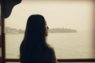Keywords: looking forward to sea woman girls long hair sail rear view lonely