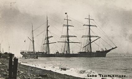| Keywords: LORD TEMPLEMORE - SLV H99.220-4088.jpg en Four masted barque LORD TEMPLEMORE at anchor 3039 tons Built at Belfast 1892 Sold to Germany renamed Alsternixe The vessel was lost at sea in 1906 The Marine Investigation Board of Hamburg Seeamt Hamburg concluded that the ship under Captain Ludwig Althaber left Callao/Peru on November 26th 1906 bound for Sydney Heads with a crew of 30 men The ship was never seen again It is believed she sank in a heavy gale in the southern Pacific about January 18th 1907 A list with the whole crew with their date of birth and country of origin can be found in an article in Viermastbark ´Alsternixe´ von Hamburg Verschollen Seeamt Hamburg 3 Dezember 1907 in Reichsamt des Innern editor Entscheidungen des Ober-Seeamts und der Seeämter des Deutschen Reichs Vol 18 Hamburg 1910 p 211-216 Information from Gerhard Wiechmann October 2010 http //handle slv vic gov au/10381/15135 State Library of Victoria Malcolm Brodie shipping collection SLVIC-digitalimage 15135 H99 220/4088 author - Gift of Malcolm M Brodie 1946 < 1906 http //digital slv vic gov au/webclient/MetadataManager pid 81682 descriptive_only true This work is out of copyright <br>State Library of Victoria request acknowledgement of the work's creator and the source of the work PD-Australia Lord Templemore ship 1892 Black and white photographs |