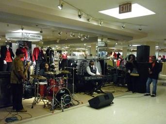| Keywords: Lori L. Hollis and her band.JPG en The Lori Hollis Project band plays in Macy's Downtown Pittsburgh store in Pittsburgh PA Singer/songwriter Lori L Hollis center plays the drums 2013-12-03 20 38 07 own Photojunkie Uploaded with UploadWizard Macy's Downtown Pittsburgh |