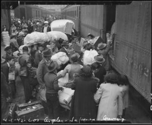 | Keywords: Los Angeles, California. Evacuees of Japanese ancestry entraining for Manzanar, California, 250 mil . . . - NARA - 536765.jpg Scope and content The full caption for this photograph reads Los Angeles California Evacuees of Japanese ancestry entraining for Manzanar California 250 miles away where they are now housed in a War Relocation Authority center General notes 536765 Local identifier 210-G-B16 Department of the Interior War Relocation Authority 02/16/1944 - 06/30/1946 NARA-Author Albers Clem Photographer 8452194 <br /> Still Picture Records Section Special Media Archives Services Division NWCS-S National Archives at College Park 8601 Adelphi Road College Park MD 20740-6001 1942 - 1945 Record group Record Group 210 Records of the War Relocation Authority 1941 - 1989 Record group ARC 537 Central Photographic File of the War Relocation Authority compiled 1942 - 1945 Series ARC 536000 File unit File unit ARC Variant control numbers NAIL Control Number NWDNS-210-G-B16 Other versions <gallery> File Los_Angeles _California _Evacuees_of_Japanese_ancestry_entraining_for_Manzanar _California _250_mil_ _ _ _-_NARA_-_536765 tif tif File Los_Angeles _California _Evacuees_of_Japanese_ancestry_entraining_for_Manzanar _California _250_mil_ _ _ _-_NARA_-_536765 jpg jpg </gallery> NARA-cooperation PD-USGov Clem Albers Japanese American internment processing in Los Angeles Rail passenger cars of the United States Rail transport in California Southern Pacific Railroad Rail transport in Los Angeles |