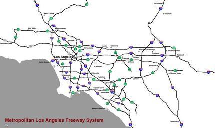Keywords: Losangelesx.jpg Map of the Metropolitan Los Angeles Freeway system Created by User Mikeetc Road transport in Los Angeles 2006-08-30 own assumed Ulfer Maps of cities in California