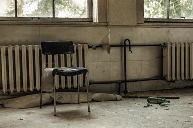 Keywords: lost places chair abandoned old broken radiator window bottle