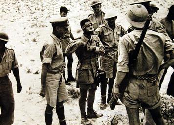 | Keywords: people outdoor Lot 11588-23: North African Campaign. Italian Fighter Pilot and “Plane” bagged by South Africans at El Alamein. Men of a South African Brigade shot down a Macchi fighter and took the pilot, an Italian, prisoner. The pilot is shown after his wounds were dressed. He is surrounded by his captors. Office of War Information Photograph. (2016/02/11). Lot 11588-23: North African Campaign. Italian Fighter Pilot and “Plane” bagged by South Africans at El Alamein. Men of a South African Brigade shot down a Macchi fighter and took the pilot, an Italian, prisoner. The pilot is shown after his wounds were dressed. He is surrounded by his captors. Office of War Information Photograph. (2016/02/11). |