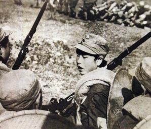 | Keywords: outdoor Lot 11614-7: Second Sino-Japanese War, July 1937-September 1945. Battle of Changsha, December-January 1942. China at War. Chinese youth is a generation of fighters. Since the outbreak of war, China has trained more than 200,000 young men and women to work on every front, standing shoulder to shoulder with the Regular Forces in the fire of battle, organizing the people, and mobilizing all sections of their work. Their Army and their people are becoming one in common effort and common struggle. Members of the Student’s Corps starting for the front. Photograph released March 1942. Office of War Information Photograph. (2016/01/22). Lot 11614-7: Second Sino-Japanese War, July 1937-September 1945. Battle of Changsha, December-January 1942. China at War. Chinese youth is a generation of fighters. Since the outbreak of war, China has trained more than 200,000 young men and women to work on every front, standing shoulder to shoulder with the Regular Forces in the fire of battle, organizing the people, and mobilizing all sections of their work. Their Army and their people are becoming one in common effort and common struggle. Members of the Student’s Corps starting for the front. Photograph released March 1942. Office of War Information Photograph. (2016/01/22). |