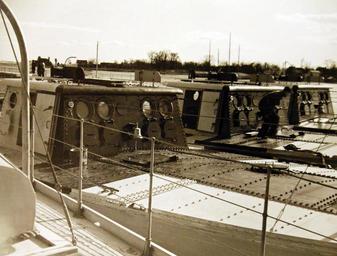 | Keywords: monochrome outdoor Lot-2144-1: Marine Construction Company, Stamford, Connecticut, March 1942. They keep Uncle Sam’s naval bombers in practice. Target boats nearing completion at an eastern yard. Bombers drop sandbag “bombs” on the armored decks to sharpen their aim when they are handling the real “eggs of war.” Office of War Information. Courtesy of the Library of Congress. (2016/06/24). Lot-2144-1: Marine Construction Company, Stamford, Connecticut, March 1942. They keep Uncle Sam’s naval bombers in practice. Target boats nearing completion at an eastern yard. Bombers drop sandbag “bombs” on the armored decks to sharpen their aim when they are handling the real “eggs of war.” Office of War Information. Courtesy of the Library of Congress. (2016/06/24). |
