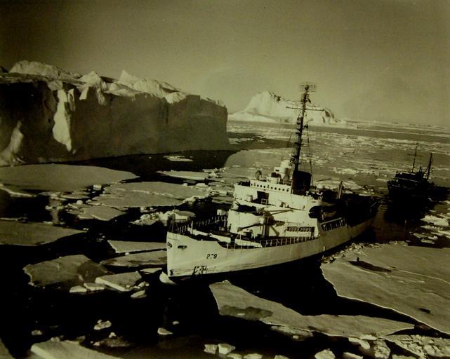 | Keywords: monochrome Lot 5967-1: U.S. Coast Guard Icebreakers and U.S. Navy Task Group in Arctic Mission. Looking like cracked white frosting on a chocolate cake are these big sheets of ice, as the U.S. Coast Guard Cutter Eastwind (WAGB-279) travels through them. The ship’s helicopter hovers near to get this shot of the vessel and the ocean-going tug following close behind during a recent Arctic cruise. Note the huge icebergs in the background. The Coast Guard ice-breakers Eastwind and Northwind (WAGB-282) were among the heavy-duty icebreakers in a Navy Task Group which raced against time during the brief Arctic “summer” on two missions known operationally as NANOOK 52 (supplying icebound weather stations in the Arctic) and SUMAC. Official U.S. Coast Guard Photograph, release September 1952. Photographed through Mylar sleeve. (2015/10/09). Lot 5967-1: U.S. Coast Guard Icebreakers and U.S. Navy Task Group in Arctic Mission. Looking like cracked white frosting on a chocolate cake are these big sheets of ice, as the U.S. Coast Guard Cutter Eastwind (WAGB-279) travels through them. The ship’s helicopter hovers near to get this shot of the vessel and the ocean-going tug following close behind during a recent Arctic cruise. Note the huge icebergs in the background. The Coast Guard ice-breakers Eastwind and Northwind (WAGB-282) were among the heavy-duty icebreakers in a Navy Task Group which raced against time during the brief Arctic “summer” on two missions known operationally as NANOOK 52 (supplying icebound weather stations in the Arctic) and SUMAC. Official U.S. Coast Guard Photograph, release September 1952. Photographed through Mylar sleeve. (2015/10/09). |