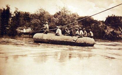 | Keywords: outdoor Lot-7676-3-4: WWI, German Activities. Translated from German: “From the Palestine Front: German pioneers ride he ferry to Jordan.” Courtesy of the Library of Congress. (2016/09/02). Lot-7676-3-4: WWI, German Activities. Translated from German: “From the Palestine Front: German pioneers ride he ferry to Jordan.” Courtesy of the Library of Congress. (2016/09/02). |