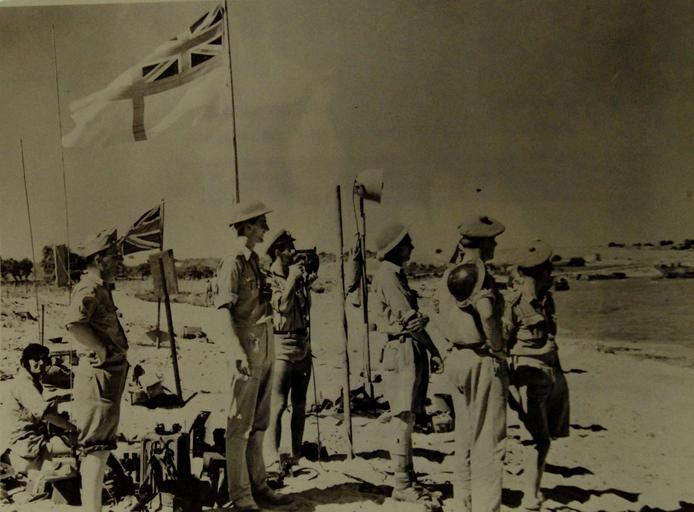 Keywords: monochrome people Lot-805-33 (42797): Operation Husky - Invasion of Sicily, 9 July – August 17, 1943. As the British Fought Their Way Up Sicily’s East Coast, July 1943. A group of British Army and Navy officers, and an American observer, Commander Walter Chappell, USNR, (standing left), liason officer with the Eighth Army, watch landing parties pour in as they stand at a beach signal station, where the British flag has just been planted. Photograph released August 24, 1943. Photographed through Mylar sleeve. U.S. Navy Photograph. (2015/10/30). Lot-805-33 (42797): Operation Husky - Invasion of Sicily, 9 July – August 17, 1943. As the British Fought Their Way Up Sicily’s East Coast, July 1943. A group of British Army and Navy officers, and an American observer, Commander Walter Chappell, USNR, (standing left), liason officer with the Eighth Army, watch landing parties pour in as they stand at a beach signal station, where the British flag has just been planted. Photograph released August 24, 1943. Photographed through Mylar sleeve. U.S. Navy Photograph. (2015/10/30).