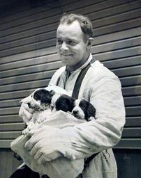 | Keywords: people Lot-840-1: “Firemen of the Fleet,” August 18, 1943. In peace or war, there is one foe eternally feared by every man that goes to sea – fire. In wartime, fire is twice as deadly in peace. Ignited by enemy shells or bombs, the flames menace personnel already busy at their battle stations – and every man called from his post gives the foe that much more advantage during action. Thus the Navy has founded fire-fighting schools to train specialists in the grim art of extinguishing fires anywhere aboard ship quickly and methodically. Different methods are taught the seagoing fireman for combatting flames in different sections of the ship. To lend realism to the courses, substantial “mock-ups” of vessels have been built, in which the trainees learn their grim lessons, mater the use of their flame-fighting equipment. Shown: Armful of Mascots. Snugly cuddled in the asbestos helmet of Phil Barabas, 2/C, three Dalmatian pups born at the firefighting school look forward to careers as mascots of the organization. U.S. Navy Photograph. Courtesy of the Library of Congress. (2016/04/14). Photographed through Mylar sleeve. Lot-840-1: “Firemen of the Fleet,” August 18, 1943. In peace or war, there is one foe eternally feared by every man that goes to sea – fire. In wartime, fire is twice as deadly in peace. Ignited by enemy shells or bombs, the flames menace personnel already busy at their battle stations – and every man called from his post gives the foe that much more advantage during action. Thus the Navy has founded fire-fighting schools to train specialists in the grim art of extinguishing fires anywhere aboard ship quickly and methodically. Different methods are taught the seagoing fireman for combatting flames in different sections of the ship. To lend realism to the courses, substantial “mock-ups” of vessels have been built, in which the trainees learn their grim lessons, mater the use of their flame-fighting equipment. Shown: Armful of Mascots. Snugly cuddled in the asbestos helmet of Phil Barabas, 2/C, three Dalmatian pups born at the firefighting school look forward to careers as mascots of the organization. U.S. Navy Photograph. Courtesy of the Library of Congress. (2016/04/14). Photographed through Mylar sleeve. |
