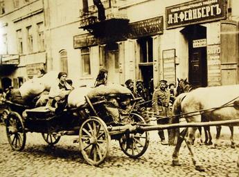 | Keywords: vehicle Lot-8885-28: WWI – German Activities. Jewish refugees of Poland following the German advance in the hope of reoccupying the huts from which the Russians had driven them. The entire harness of the horses, except for the collar, is made of rope, the Russians having confiscated all of the leather harness which fell into their hands. Courtesy of the Library of Congress. (2016/10/04). Lot-8885-28: WWI – German Activities. Jewish refugees of Poland following the German advance in the hope of reoccupying the huts from which the Russians had driven them. The entire harness of the horses, except for the collar, is made of rope, the Russians having confiscated all of the leather harness which fell into their hands. Courtesy of the Library of Congress. (2016/10/04). |