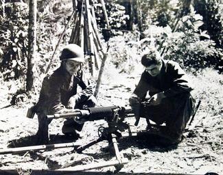 | Keywords: outdoor Lot-909-7 (111-SC-162499): Private Waino Lehto and Private Joseph G. Kovach examining a Japanese machine gun captured in New Guinea, December 31, 1942. U.S. Army Signal Corps Photograph. Courtesy of the Library of Congress. (2016/04/15). Lot-909-7 (111-SC-162499): Private Waino Lehto and Private Joseph G. Kovach examining a Japanese machine gun captured in New Guinea, December 31, 1942. U.S. Army Signal Corps Photograph. Courtesy of the Library of Congress. (2016/04/15). | ||||