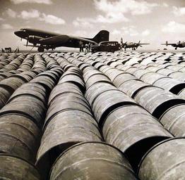 | Keywords: beverage food pattern texture Lot-926-1: The Navy’s Own Airline. Any mention of aircraft in war time invariably connotes the deadly use of planes as offensive and defensive weapons – bombers, fighters, and the varying adaptations of these two general classes. Yet, even in war, the plane is filling the function which was its biggest role in peacetime – and will be even more important when peace comes again. That is, the task of delivering passenger and freight. Flying under the aegis of the Naval Air Transportation Service (NATS), giant R4D planes (the equivalent of DC-5’s) transport men and material of war all over the world to the fronts where they are needed the most. Founded five days after the Pearl Harbor attack, NATS today links five continents, spans many seas in its unending traffic runs. Its ever-growing staff of pilots and groundsmen now includes 2,500 men. Run in business-like fashion, according to minutely-timed schedules, NATS operates 60,000 miles of flight, stopping at every type of field from jungle “whistle-stops” to metropolitan airports. Shown: R4D’s Drink Deep. This picture gives some idea of the tremendous amount of gasoline needed to keep Uncle Sam flying. Row on row of drums of fuel stretch out beside the NATS plane they feed at a Brazilian airport. U.S. Navy Photograph, released October 5, 1943. Courtesy of the Library of Congress. (2016/04/14). Note, photographed through Mylar sleeve. Lot-926-1: The Navy’s Own Airline. Any mention of aircraft in war time invariably connotes the deadly use of planes as offensive and defensive weapons – bombers, fighters, and the varying adaptations of these two general classes. Yet, even in war, the plane is filling the function which was its biggest role in peacetime – and will be even more important when peace comes again. That is, the task of delivering passenger and freight. Flying under the aegis of the Naval Air Transportation Service (NATS), giant R4D planes (the equivalent of DC-5’s) transport men and material of war all over the world to the fronts where they are needed the most. Founded five days after the Pearl Harbor attack, NATS today links five continents, spans many seas in its unending traffic runs. Its ever-growing staff of pilots and groundsmen now includes 2,500 men. Run in business-like fashion, according to minutely-timed schedules, NATS operates 60,000 miles of flight, stopping at every type of field from jungle “whistle-stops” to metropolitan airports. Shown: R4D’s Drink Deep. This picture gives some idea of the tremendous amount of gasoline needed to keep Uncle Sam flying. Row on row of drums of fuel stretch out beside the NATS plane they feed at a Brazilian airport. U.S. Navy Photograph, released October 5, 1943. Courtesy of the Library of Congress. (2016/04/14). Note, photographed through Mylar sleeve. |