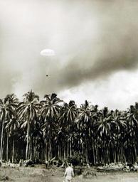 | Keywords: outdoor Lot 9780-2: The Navy’s Flying Photographers, January 25, 1944. In the long Pacific front, few branches of the Allied forces charged with prying the Japanese out of their scattered island bases are more vital than aerial photo reconnaissance squadrons. Swooping down over the enemy outposts, defying the anti-aircraft fire which guards salient sections, “camera” planes film details of construction and topography invaluable to intelligence officers. From their photographs, scenic maps are made, and photo interpretation reports prepared which supply vital information for combat tactics. Such a squadron is the Navy’s famed, VD-1, based on Guadalcanal. In their own photographs, they tell part of the story of the all important roles they are playing in building the road to Tokyo. Shown: Special Delivery. Photographs taken over enemy territory have often been dropped by parachute to photographic units for speedy development and printing. This package, settling down on Rendova, contains photographs taken over Munda during the campaign for seizure of that Pacific base. U.S. Navy Photograph. Courtesy of the Library of Congress. (2016/04/22). Lot 9780-2: The Navy’s Flying Photographers, January 25, 1944. In the long Pacific front, few branches of the Allied forces charged with prying the Japanese out of their scattered island bases are more vital than aerial photo reconnaissance squadrons. Swooping down over the enemy outposts, defying the anti-aircraft fire which guards salient sections, “camera” planes film details of construction and topography invaluable to intelligence officers. From their photographs, scenic maps are made, and photo interpretation reports prepared which supply vital information for combat tactics. Such a squadron is the Navy’s famed, VD-1, based on Guadalcanal. In their own photographs, they tell part of the story of the all important roles they are playing in building the road to Tokyo. Shown: Special Delivery. Photographs taken over enemy territory have often been dropped by parachute to photographic units for speedy development and printing. This package, settling down on Rendova, contains photographs taken over Munda during the campaign for seizure of that Pacific base. U.S. Navy Photograph. Courtesy of the Library of Congress. (2016/04/22). |