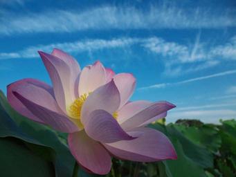 Keywords: lotus flower bloom petals floral blossom white blooming plant clouds sky foliage