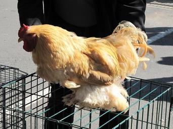 Keywords: Louhans little cock 1.jpg en Young cock in the monday market in Louhans Saône-et-Loire France fr Jeune coq au marché du lundi à Louhans Saône-et-Loire own Tangopaso 2011-08-29 10 30 34 Markets in Louhans Poultry of France Roosters