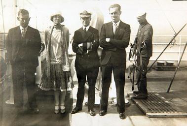 | Keywords: louis e. e slim gordon special collection photo aviation aviator wilmer lower stultz wilmerlowerstultz wilmer lower 'bill' stultz wilmerlowerbillstultz wilmer l. stultz wilmerlstultz wilmer stultz wilmerstultz bill stultz billstultz stultz lou gordon lougordon aviators aviatrix amelia earhart ameliaearhart earhart mechanic louis gordon louisgordon louis 'slim' gordon louisslimgordon slim gordon slimgordon people monochrome Catalog #: 09_01426 Title: Louis E. ""Slim"" Gordon Special Collection Photo Additional Information: Lou Gordon (second from left) with two men and one woman on deck of ship. Sailor is at the ships wheel in background, Louis Gordon was the co-pilot/ mechanic with Wilmer Stultz on the 1928 Transatlantic flight of the Fokker F7 ""Friendship"" which flew from Newfoundland to Wales in 1928. Amelia Earhart was a passenger on this flight and it is remembered as the first air crossing of the Atlantic by a female. Tags: Louis E. ""Slim"" Gordon Special Collection Photo Repository: San Diego Air and Space Museum Archive Catalog #: 09_01426 Title: Louis E. ""Slim"" Gordon Special Collection Photo Additional Information: Lou Gordon (second from left) with two men and one woman on deck of ship. Sailor is at the ships wheel in background, Louis Gordon was the co-pilot/ mechanic with Wilmer Stultz on the 1928 Transatlantic flight of the Fokker F7 ""Friendship"" which flew from Newfoundland to Wales in 1928. Amelia Earhart was a passenger on this flight and it is remembered as the first air crossing of the Atlantic by a female. Tags: Louis E. ""Slim"" Gordon Special Collection Photo Repository: San Diego Air and Space Museum Archive |