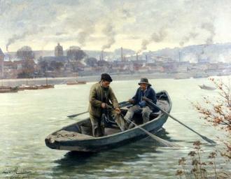 Keywords: Louis-Émile Minet La pêche à la violette.jpg Artwork Creator Louis-Émile Minet Two fishermen in a boat 1887 Oil on canvas Size cm 115 5 143 musée d'Elbeuf Elbeuf object history credit line accession number Joconde M1099000012 PD-old-80 19th-century paintings Paintings of men of France Musée d'Elbeuf Louis-Émile Minet Paintings of Normandy Fishing in France