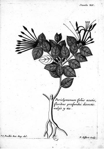| Keywords: Louis Feuillée-Periclymenum.jpg Periclymenum folis acutis flotibus profondei dissectis In Journal des Observations Physiques Mathematiques et Botaniques faites par l'ordre du roy sur les côtes orientales de l'Amérique méridionale et dans les Indes occidentals depuis l'année 1707 jusques en 1712 by Louis Feuillee 1660-1732 1714 PD-old-100 http //gallica bnf fr/ark /12148/btv1b2000103f/f89 item r Rade 20de 20Pisco 20 20par 20Louis 20Feuill C3 A9e BNF Gallica accession number cc-by-sa-4 0 Uploaded with UploadWizard Louis Feuillée |