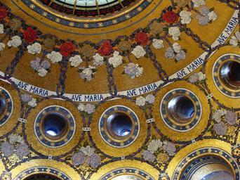 Keywords: Lourdes 16715.jpg La basilique de Notre-Dame du Rosaire la coupole du niveau inférieur détail Own 2007-07-24 Vassil Interior of the dome of Rosary Basilica Lourdes