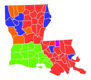 | Keywords: Lousiana Senate primary results by parish, 2016.svg FF3333 John Neely Kennedy R 3333FF Foster Campbell D 66FF00 Charles Boustany R CC00FF Caroline Fayard D FF6600 John Fleming R own MB298 2016-11-21 SVG maps by MB298 2016 United States Senate election maps Election maps of Louisiana November 2016 in Louisiana |