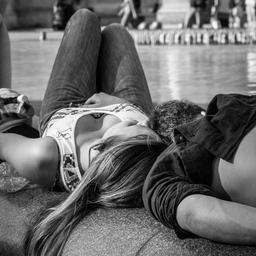 Keywords: louvre paris pyramid tourists relax sunbathing light woman romantic young couple in love