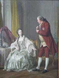 | Keywords: Louvre-peinture-francaise-p1020331.jpg Artwork Creator Louis-Michel van Loo Le Marquis de Marigny et sa femme Alternate titles Frère cadet de la marquise de Pompadour Marigny 1721-1781 fut le directeur des Bâtiments de Louis XV de 1751 à 1773 Il est représenté avec sa jeune épouse de dix-huit ans née Marie-Françoise Constance Julie Filleul 1751 - 1822 deux années après leur mariage 1769 Oil on canvas Size m 0 975 1 296 Institution Louvre room ID 368 object department paintings 00000104461 louvre online 11556 Christie's online 3072179 5192 14 object history by 1781 Abel-François Poisson de Vandières marquis de Marigny et de Ménars 1727-1781 inheritance marquise de Marigny inheritance Adélaïde Filleul acquisition comte August-Charles-Joseph de Flahaut acquisition Lady Emily Fitzmaurice acquisition A E H Digby ProvenanceEvent 1951-06-20 sale Digby Paris by 1951 Agnew ™s ProvenanceEvent 1994-06-10 auctioned Christie's London price GBP 331500 credit line ProvenanceEvent 1994 gift Louvre Paris Société des Amis du Louvre accession number RF 1994-17 00000104461 Rama <gallery> Van Loo - Le Marquis de Marigny et de sa femme 1769 jpg high resolution Van Loo - Marigny cadre JPG with frame </gallery> PD-old-100 ImageNote 1 231 94 82 99 386 514 2 Abel-François Poisson de Vandières marquis de Marigny 1727-1781 ImageNoteEnd 1 ImageNote 2 96 172 75 93 386 514 2 Julie Filleul 1751-1822 ImageNoteEnd 2 DEFAULTSORT 1769; Poisson de Vandière Paintings by Louis-Michel van Loo French paintings in the Louvre - Room 46 Abel-François Poisson de Vandières 1760s oil on canvas paintings in France 1760s paintings in the Louvre 1760s portrait paintings from France 1769 paintings in France 18th-century family portraits 18th-century people of France 18th-century oil portraits of sitting women at full length 18th-century oil portraits of standing men at full length 18th-century portrait paintings in interiors 18th-century portrait paintings in the Louvre 18th-century profile portraits of men Canes in portrait paintings Cosmetics in art Deshabille in art Dressing tables Eye contact in art Females with white dresses in art Marchionesses of France Gift of the Société des Amis du Louvre Habit à la française in portrait paintings Leaning people in art Male shoes in portrait paintings Paintings of people from France Marigny Panniers clothing in portrait paintings Portrait paintings of wedded couples Portraits with mirror Powdered hair in art Powdered wigs in art Rococo interiors Sash of the Order of the Holy Spirit in portrait paintings Star of the Order of the Holy Spirit in portrait paintings 1760s dresses |